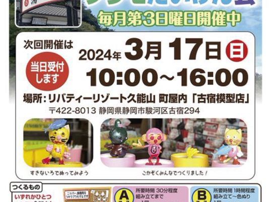 2024/03/08ありがとうございました🐵 静岡県静岡市駿河区古宿294 リバティーリゾート久能山 (町屋エリアは赤い橋までは無料) さて近々の古宿模型店は? 9(土)10時〜18時 ... -