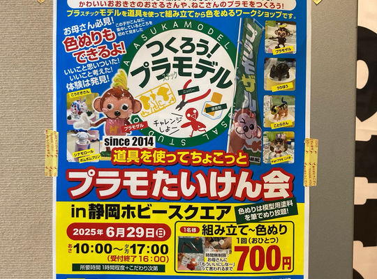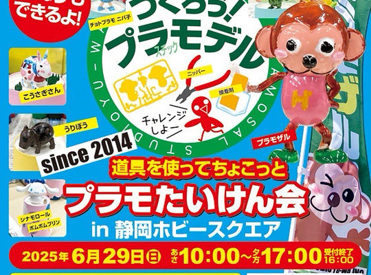 2025/06/276/29(日)は、 【プラモたいけん会 in 静岡ホビースクエア】 かわいいサイズのプラモをつくろう! おさるさんや、ねこさんのプラスチックモデル製作体験会 in 静... -