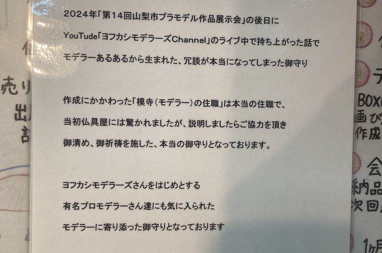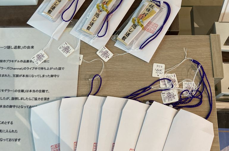 スタジオユーワがこれまで出展してきた【山梨市プラモデル作品展示会】を運営されているサポーターズの皆さまと、山梨市のお寺のご住職モデラーさん、そして #ヨフカシモデラーズ さんが共同開発されたユニークなアイテム【妖怪パーツ隠し退散お守り】を、急遽当社でもお取り扱いさせていただくこととなりました。