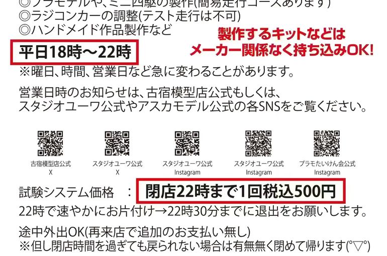 オリジナルプラモデル 【作って・遊んで・見て楽しい】古宿模型店 1/15夜営業/17・18体験営業まとめ
