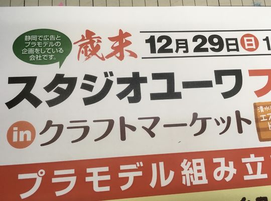 2019/12/18年の瀬真っ只中! 12/29日は エスパルスドリームプラザ2階 クラフトマーケット様で プラモデル組み立て体験販売を開催します。 まあるのプラモザル教室... -