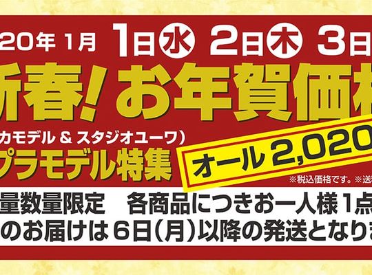 2020/01/01年明けのっけのスタジオユーワ企画! 1日〜3日まで「プラモザルショップ」で スタジオユーワ商品と、 販売代理をお願いしている アスカモデル様商品を対象とした... -
