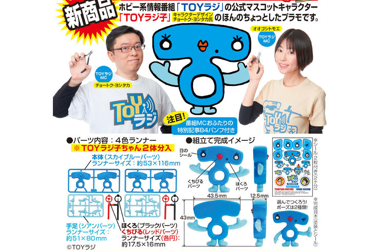 ホビー情報番組「TOYラジ」の公式マスコットキャラクターが、かわいいプラモデルになって登場!番組MC&プロモデラー・チョートク・ヨシタカ氏デザインによる「TOYラジ子」が、手のひらサイズの組み立てキットとして楽しめる“チョトプラモシリーズ”に仲間入り。
